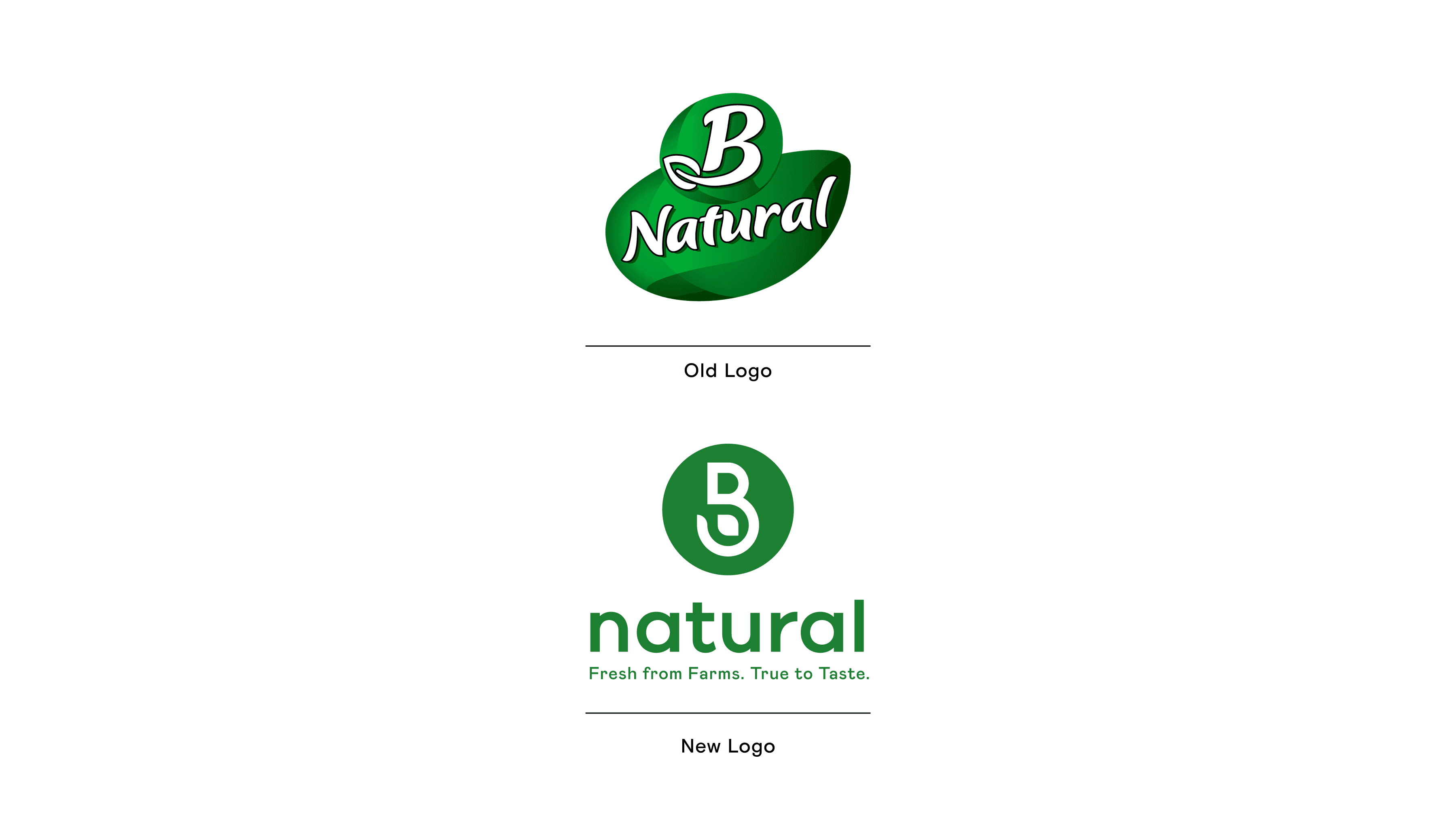 The new B Natural logo is a simple, modern design that reflects the brand’s focus on natural, farm-fresh products, appealing to health-conscious consumers.