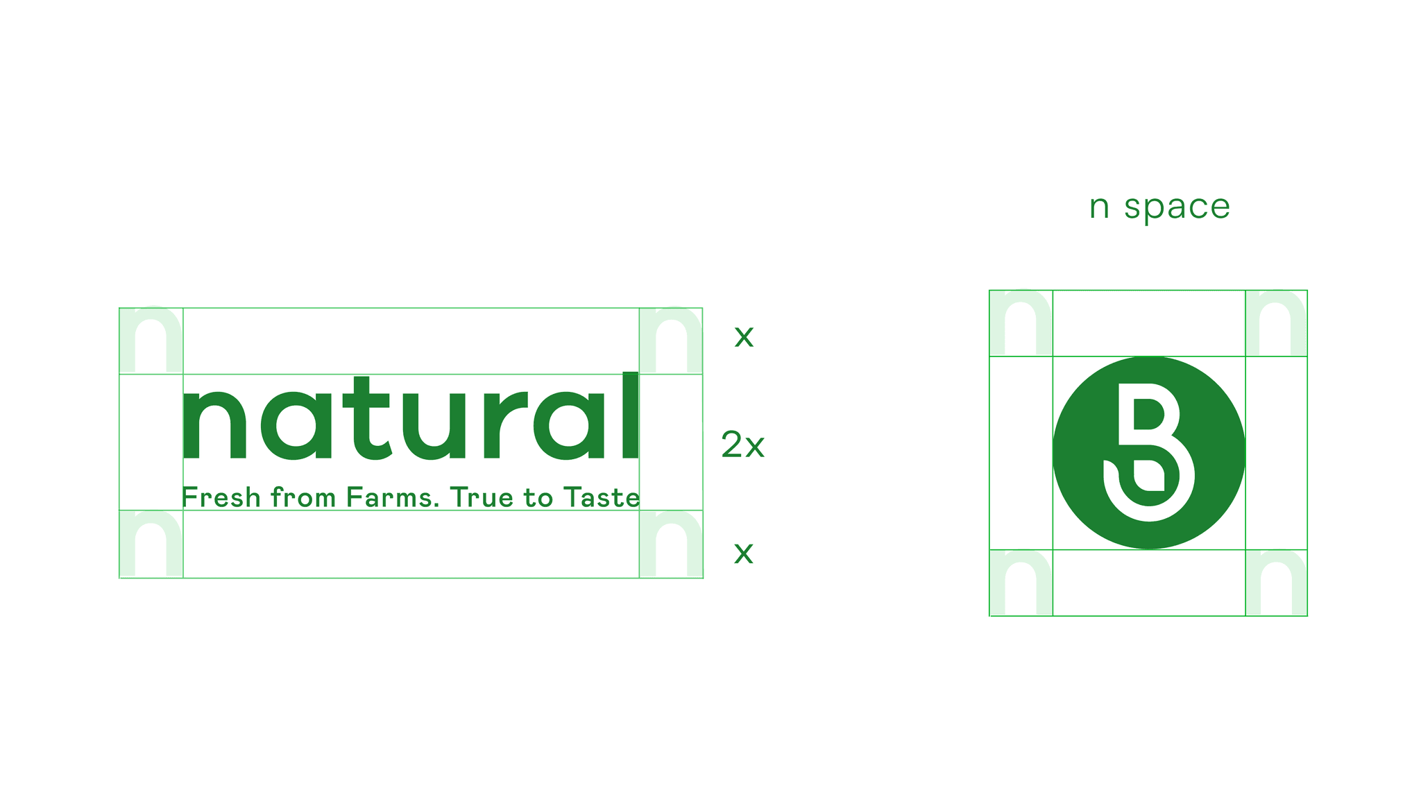 The clear space around the B Natural logo ensures visual clarity and impact, maintaining consistency and readability across different applications.